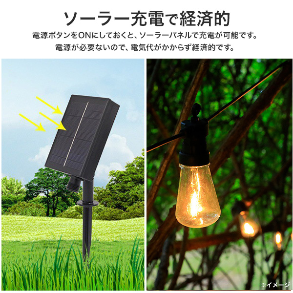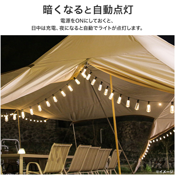 電源不要!自動で点灯。 ソーラー充電式 LEDストリングライト 10m