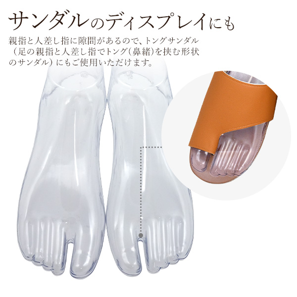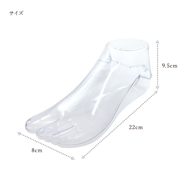靴や靴下の展示に役立つ透明のフットトルソー(足マネキン)です。
