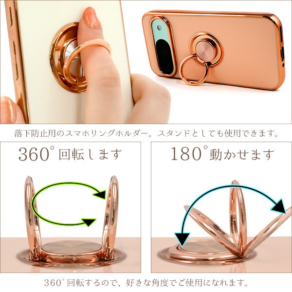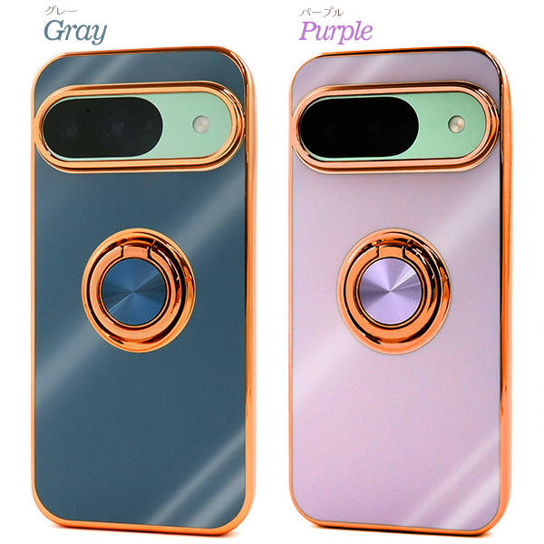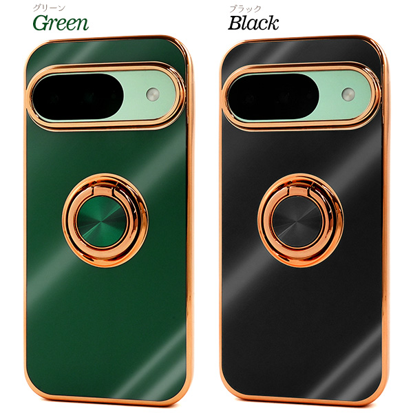 <スマホケース>Google Pixel 9/9 Pro用スマホリング付メタリックバンパーソフトカラーケース