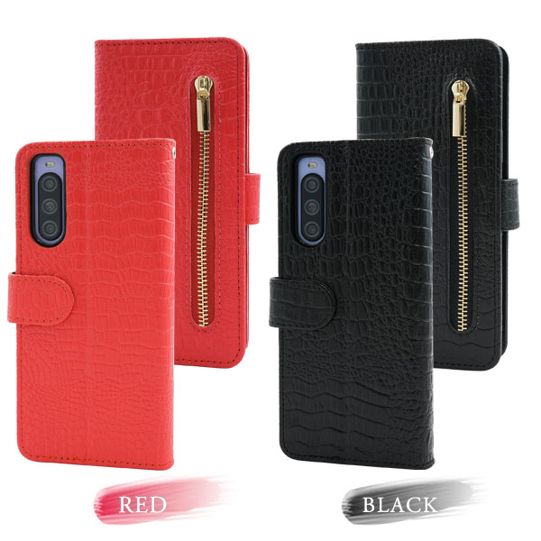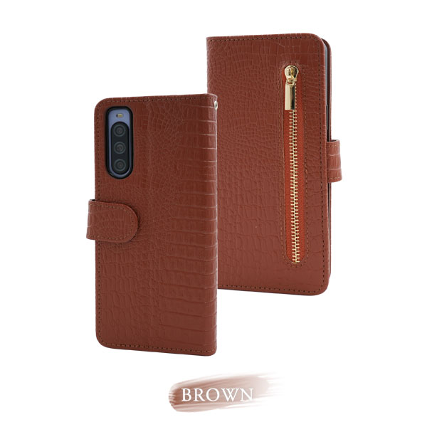 <スマホケース>Xperia 10 V SO-52D用クロコダイルレザーデザイン手帳型ケース