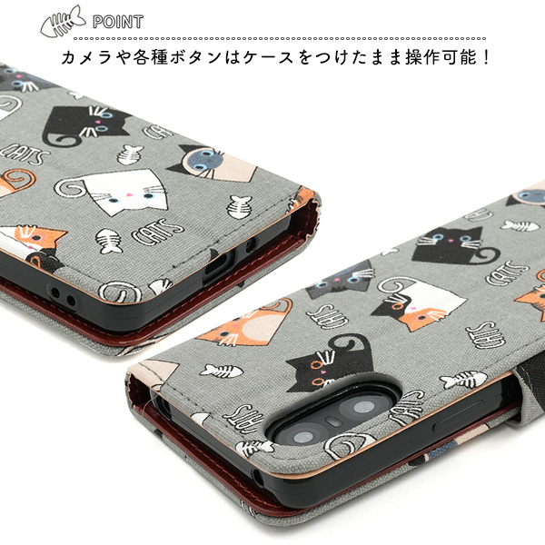 <スマホケース>Xperia 10 VI SO-52E/SOG14/A402SO/XQ-ES72用くいしんぼう猫手帳型ケース