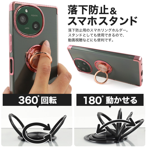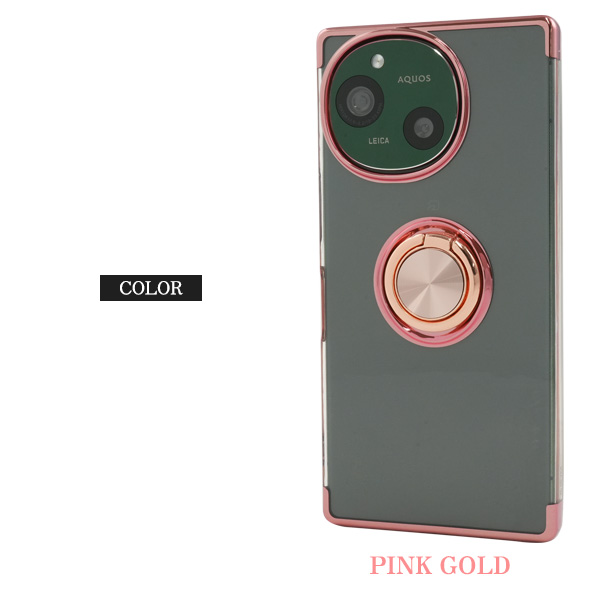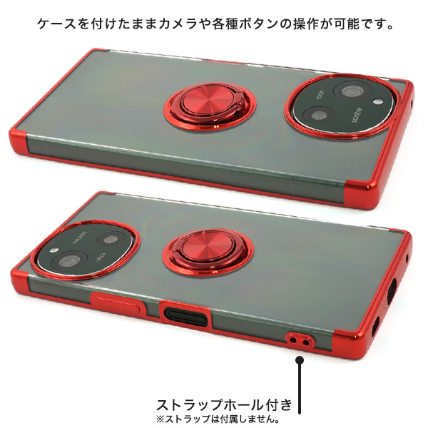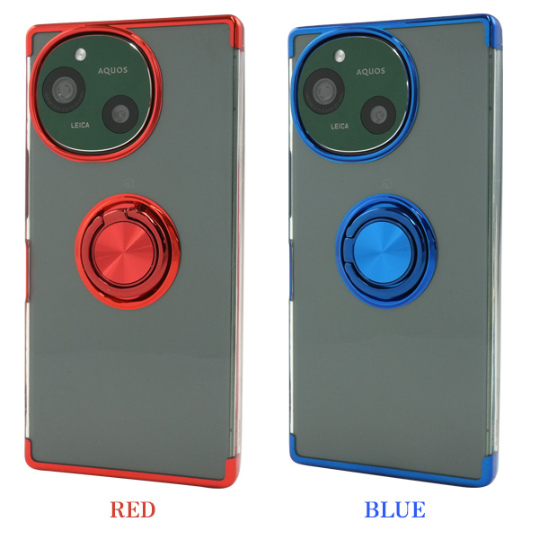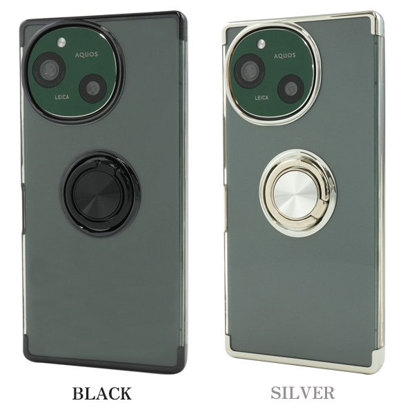 AQUOS R9 SH-51E用スマホリング付きメタルカラーバンパーソフトクリアケース
