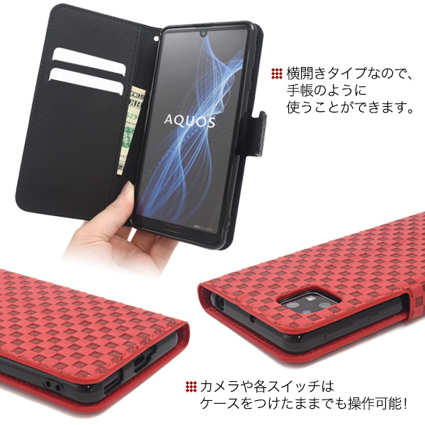 AQUOS sense5G/AQUOS sense4/sense4 lite/sense4 basic用市松模様デザイン手帳型ケース