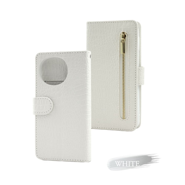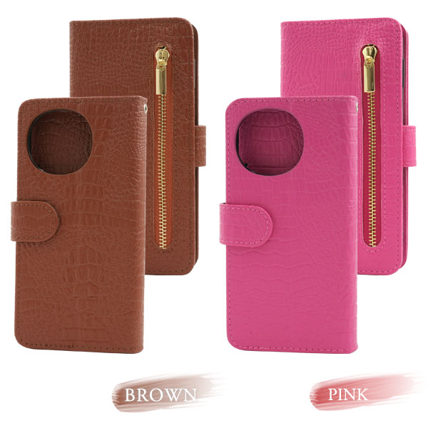 クロコダイルレザーデザインの手帳型ケース。