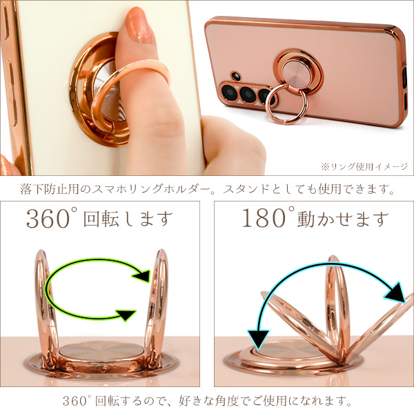 <スマホケース>Galaxy S25用スマホリング付メタリックバンパーソフトカラーケース