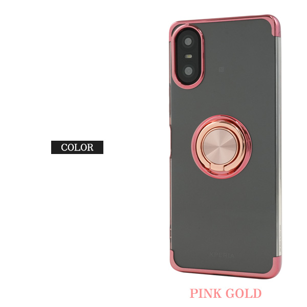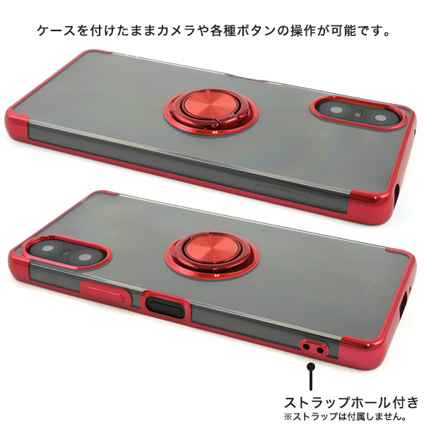 Xperia 10 VI SO-52E/SOG14/A402SO/XQ-ES72用スマホリング付きメタルカラーバンパーソフトクリアケース