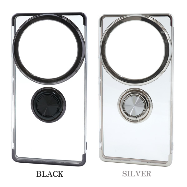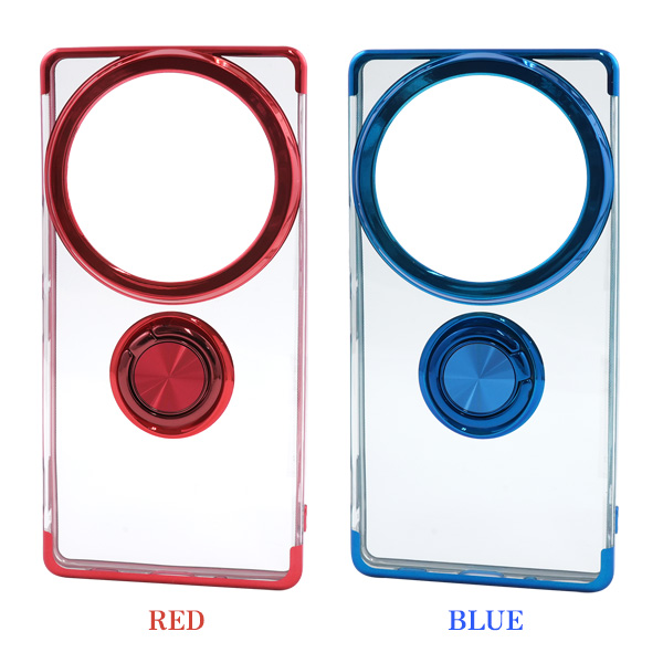AQUOS R9 pro SH-54E/SH-M30用スマホリング付きメタルカラーバンパーソフトクリアケース