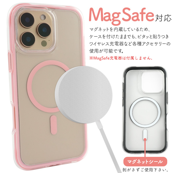 <スマホケース>iPhone 16 Pro Max用 MagSafe対応 耐衝撃クリアケース