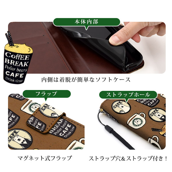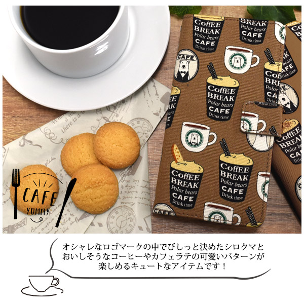 シロクマ&コーヒーデザイン手帳型ケース