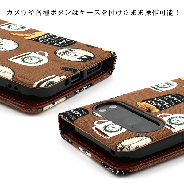 <スマホケース>Google Pixel 9/9 Pro用 シロクマ&コーヒーデザイン手帳型ケース