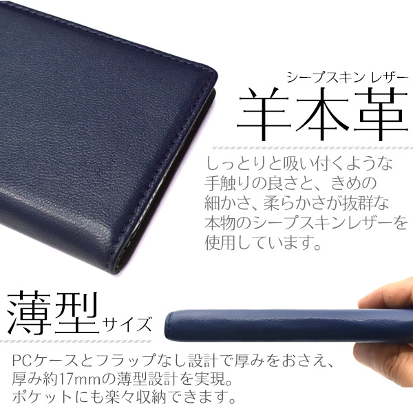 高級感あふれるシープスキンレザーを使用した、シープスキンレザー手帳型ケース。