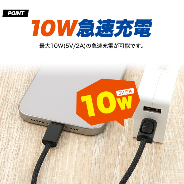 最大10W(5V/2A)の急速充電が可能です。