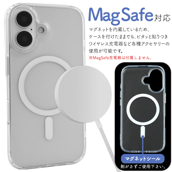 【スマホケース】iPhone 16用 MagSafe対応 耐衝撃クリアケース