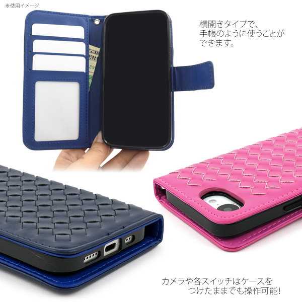 ラティス(格子)デザインがひと味違った印象になる、男女共にお使いいただけるレザーデザインの手帳型ケースです。