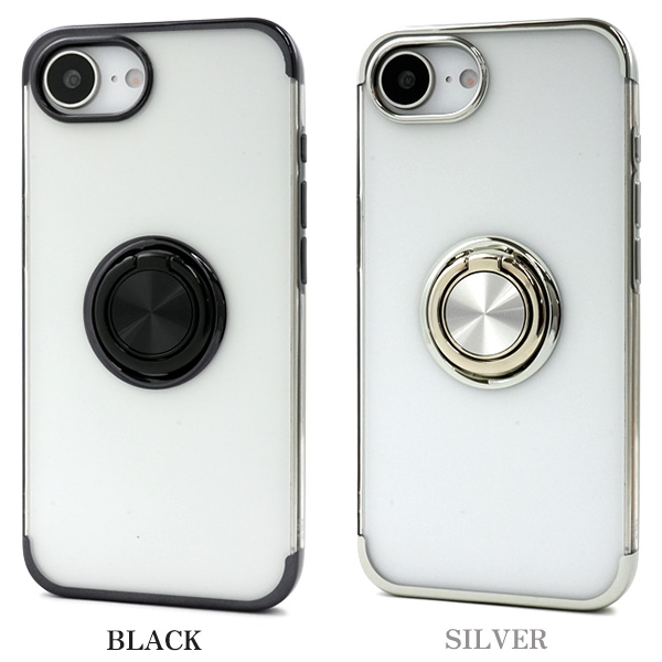 <スマホケース>iPhone 16e用スマホリング付きメタルカラーバンパーソフトクリアケース