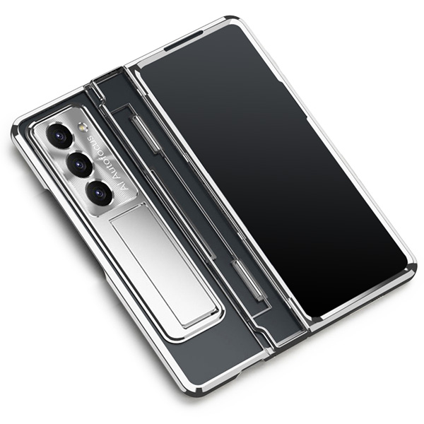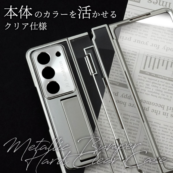 <スマホケース>Galaxy Z Fold5 SC-55D/SCG22用ヒンジ保護付きメタリックバンパーハードクリアケース