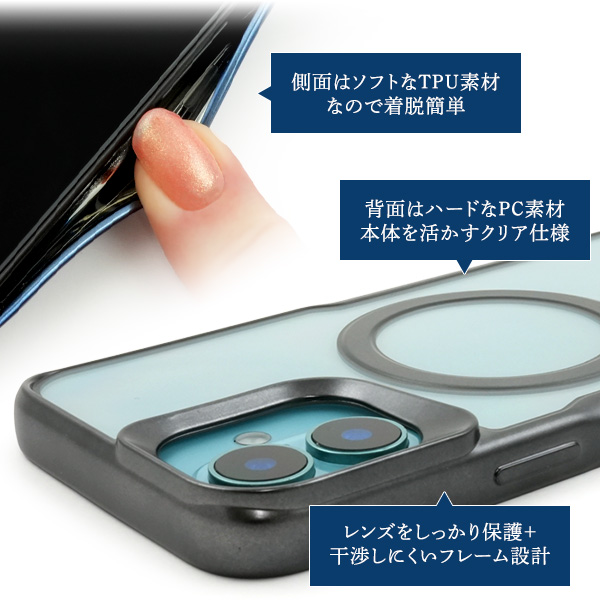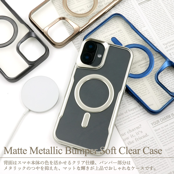 <スマホケース>iPhone 16 Plus用MagSafe対応マットメタリックバンパーソフトクリアケース