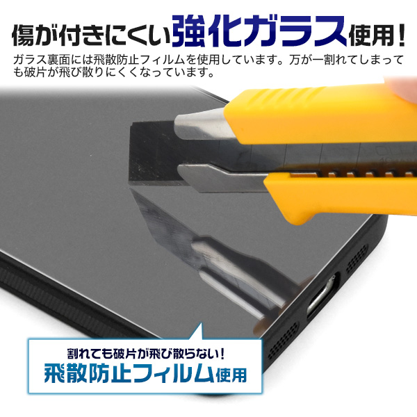 強化ガラスの裏面に反転したデータを印刷し、印刷面をケースに貼り付けるため、摩擦による印刷落ちの心配がなく、素材の光沢感を活かせるケースです。