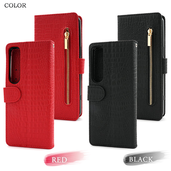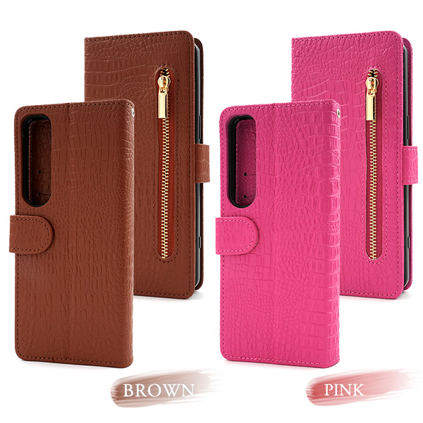 <スマホケース>Xperia 1 VII SO-51F/SOG15/A501SO/XQ-FS44用クロコダイルレザーデザイン手帳型ケース
