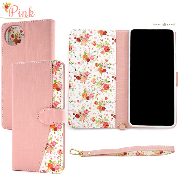 <スマホケース>AQUOS wish5 SH-52F/A502SH/SH-M32用ハッピーブーケ手帳型ケース