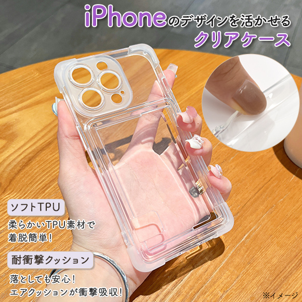 <スマホケース>iPhone 16 Pro用カードポケット付きソフトクリアケース
