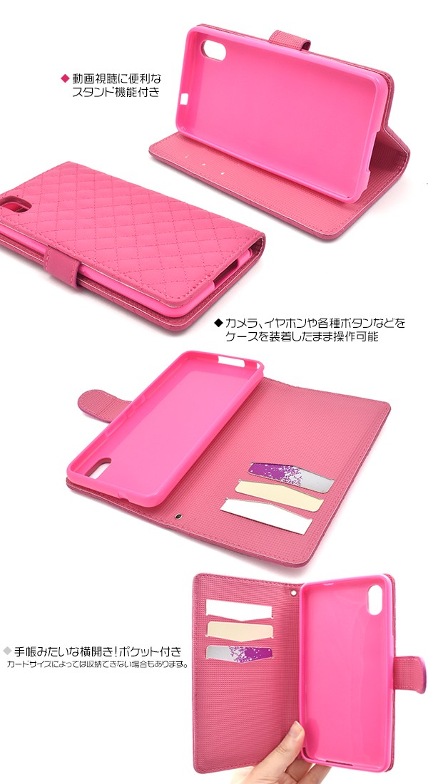 <スマホケース>Android One S4/DIGNO J用キルティングレザーケースポーチ