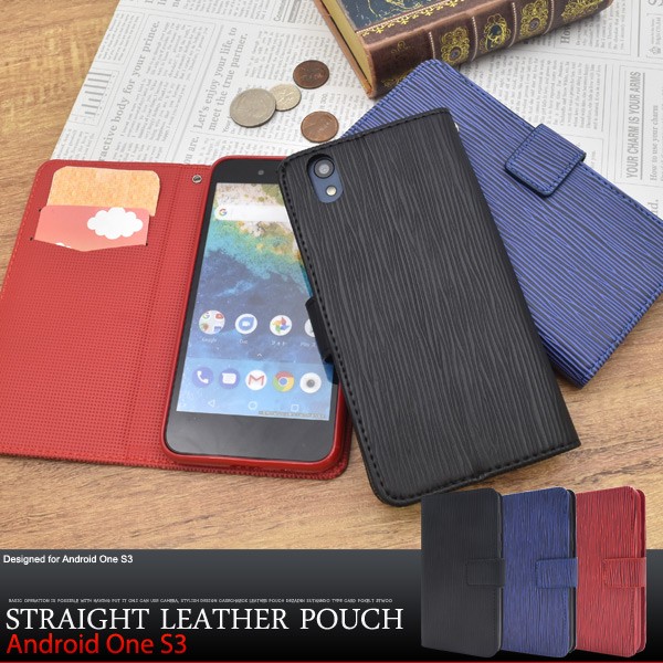 ストレートレザーデザインのAndroid One S3用スタンドケースポーチ。