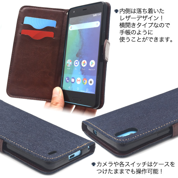 <スマホケース>Android One X3用デニムデザイン手帳型ケース