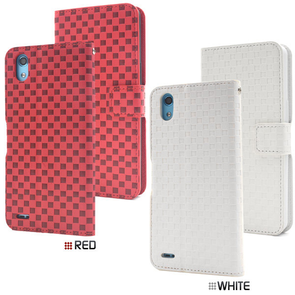 <スマホケース>Android One X3(アンドロイドワン)用市松模様デザイン手帳型ケース