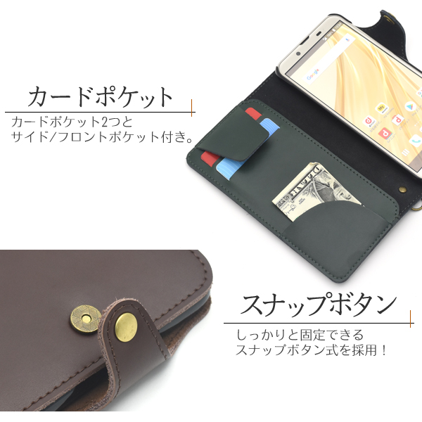 上質で滑らかな牛革を使用! AQUOS sense2 SH-01L/SHV43/SH-M08/Android One S5用本革手帳型ケース