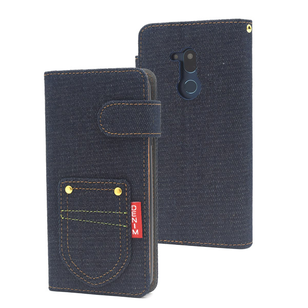 <スマホケース>Android One X5用ポケットデニムデザイン手帳型ケース