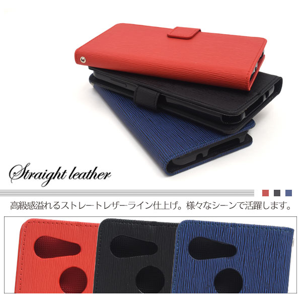 高級感あふれるストレートレザーデザインの手帳型ケース。