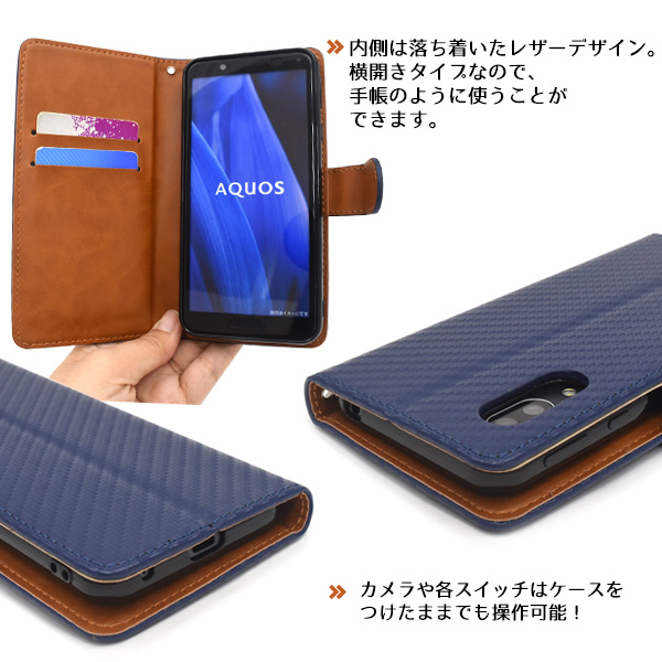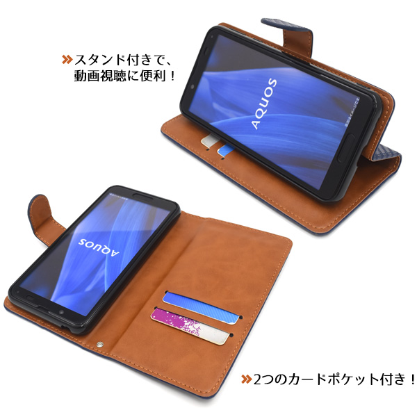 <スマホケース>AQUOS sense3 /sense3 lite SH-RM12/Android One S7用カーボンデザイン手帳型ケース