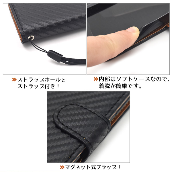 カーボンデザインの手帳型ケース