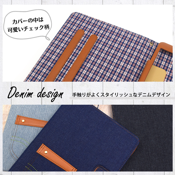カバーの中は可愛いチェック柄で、横開きタイプのカバーなので手帳のように使うことができます。