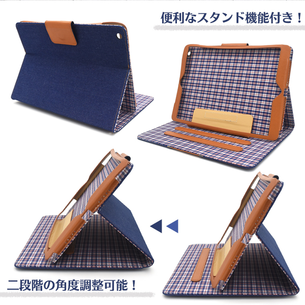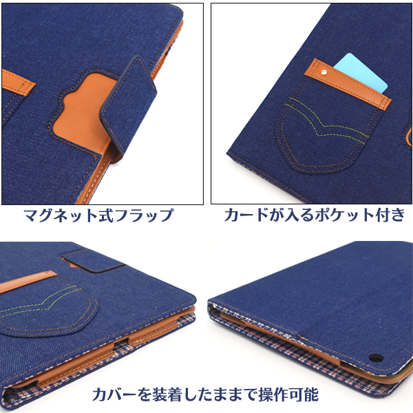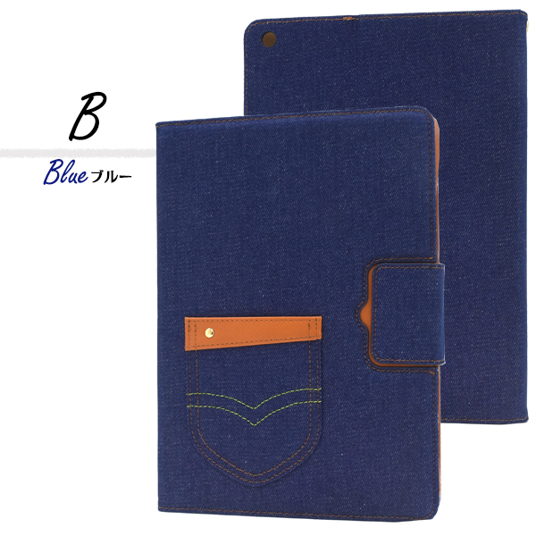 iPad 10.2インチ(第7世代 2019年モデル)用デニムデザインスタンドケースポーチ(ジーンズデザイン)