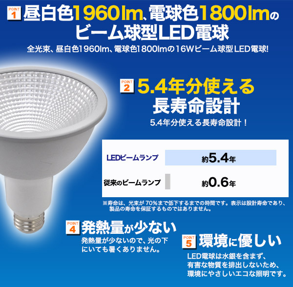看板照明などに!16Wの低消費電力LEDビーム球!!