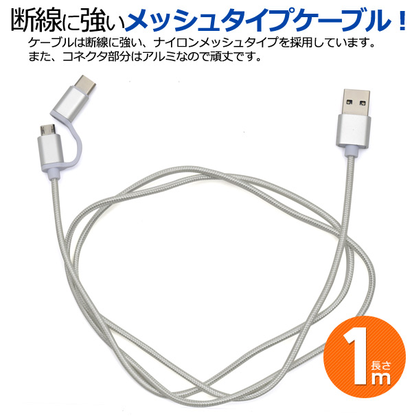 アンドロイド全て対応!両面挿しmicroUSB+Type-C マルチ充電・転送USBケーブル 1m(100cm)<56KΩ抵抗内蔵>