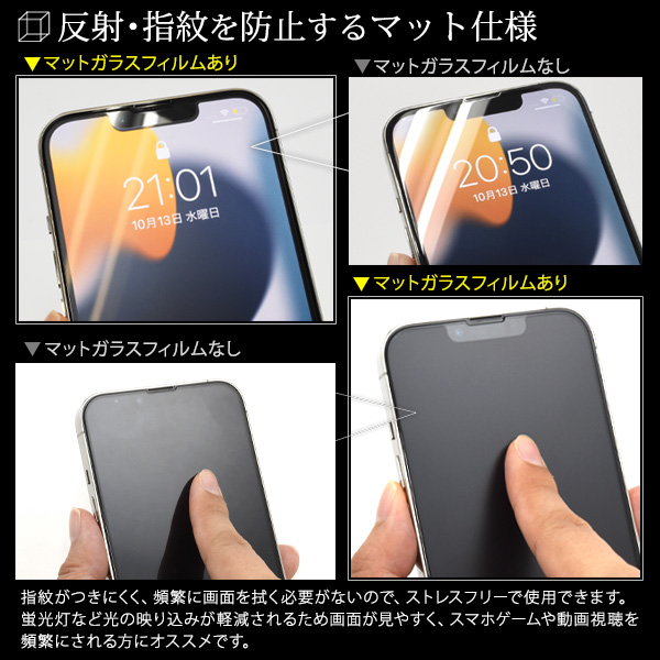 反射防止のマット仕様! iPhone 13/13 Pro・iPhone14・iPhone 16e用全画面液晶保護マットガラスフィルム