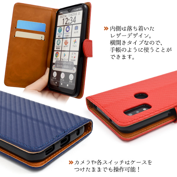 <スマホケース>arrows We F-51B/FCG01/A101FC/UQ mobile用カーボンデザイン手帳型ケース