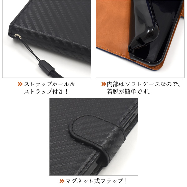 カーボンデザインの手帳型ケース