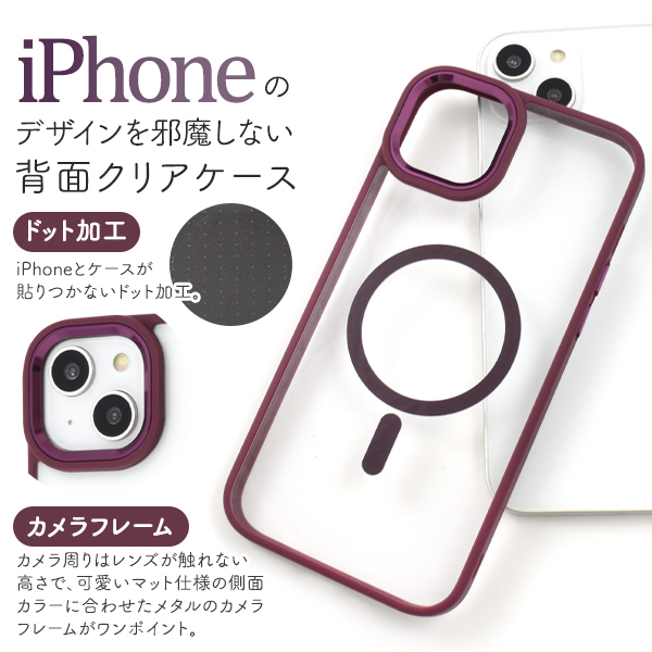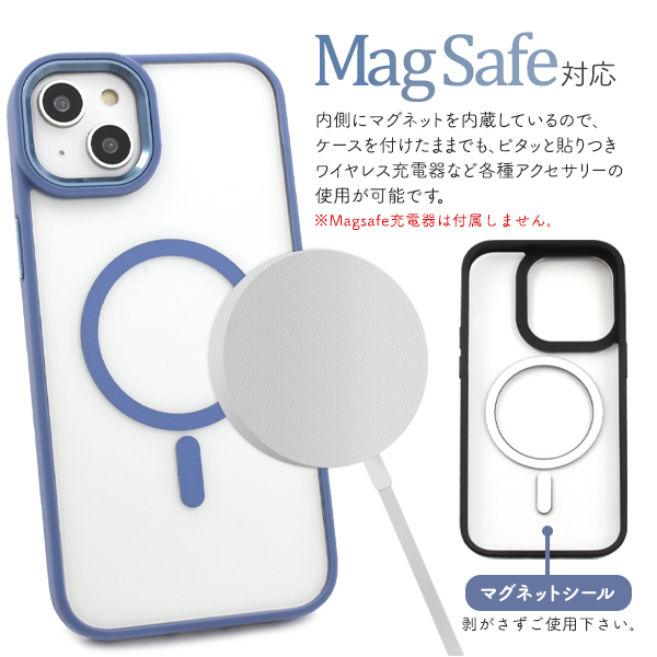 MagSafe対応で、内側にマグネットを内蔵することでケースを付けたままでも、ピタッと貼りつき、ワイヤレス充電など各種アクセサリーの使用が可能です。