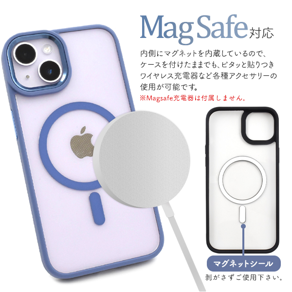 MagSafe対応で、内側にマグネットを内蔵することでケースを付けたままでも、ピタッと貼りつき、ワイヤレス充電など各種アクセサリーの使用が可能です。