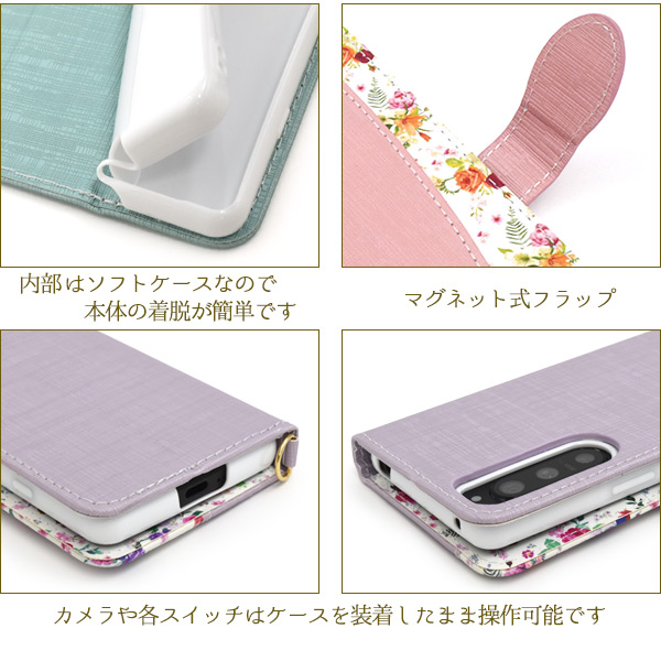 <スマホケース>Xperia 5 IV SO-54C/SOG09/A204SO用ハッピーブーケ手帳型ケース