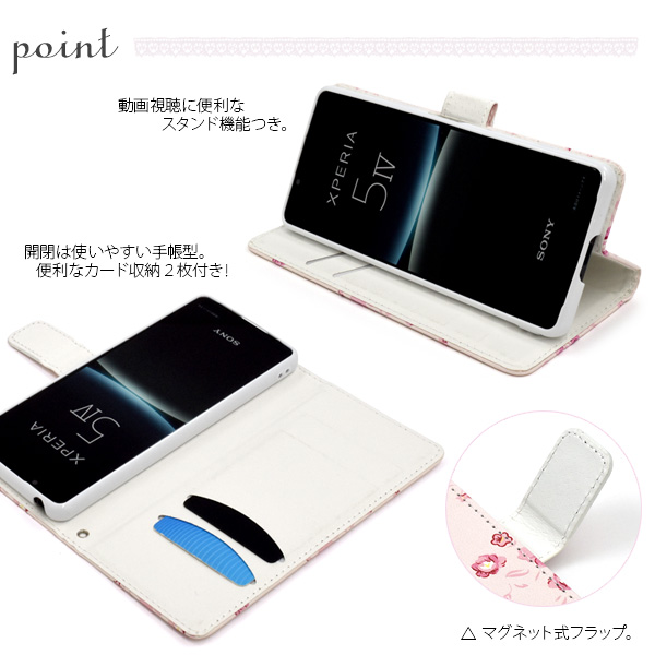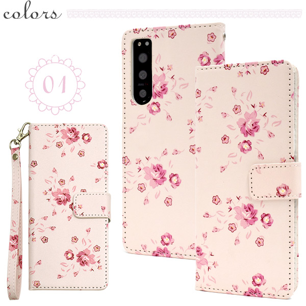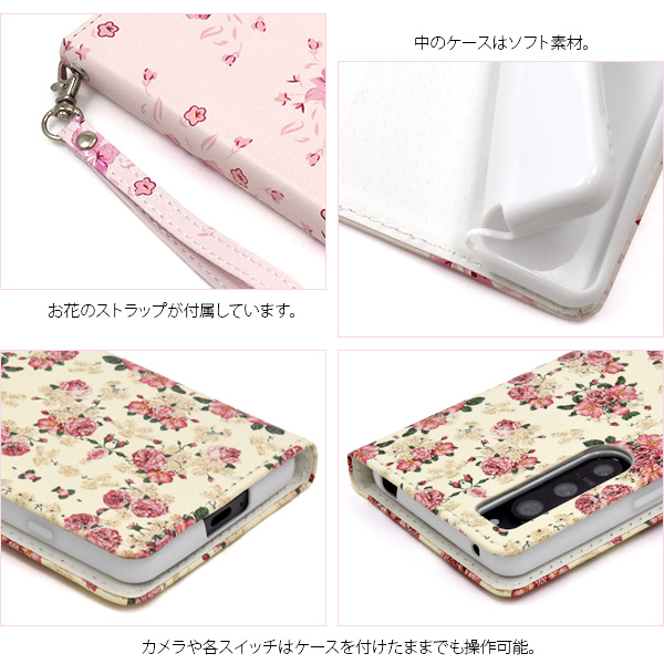 <スマホケース>Xperia 5 IV SO-54C/SOG09/A204SO用花模様手帳型ケース
