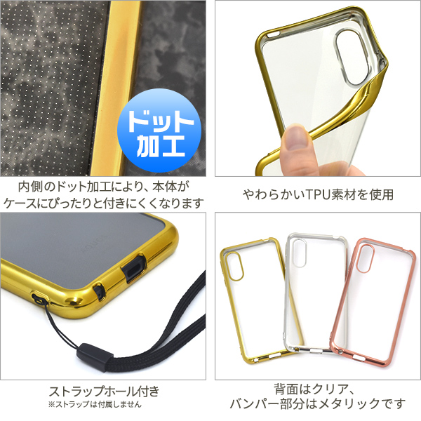 AQUOS sense3 /sense3 lite SH-RM12/sense3 basic/Android One S7用メタリックバンパーソフトクリアケース