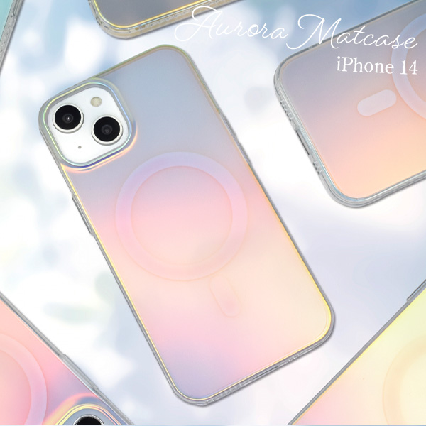 <スマホケース>幻想的に輝く♪ iPhone 14用MagSafe対応 オーロラマットケース