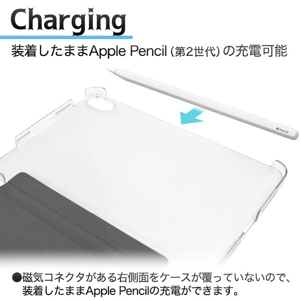 また、磁気コネクタがある右側面をケースが覆っていないので、装着したままApple Pencil(第2世代)の充電が可能です。