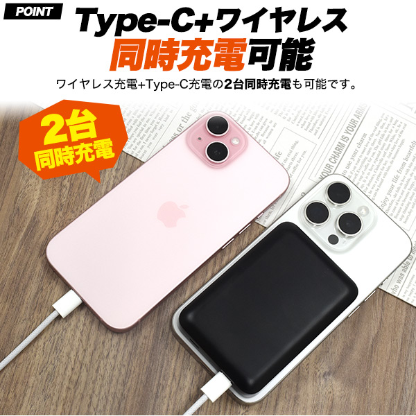 ワイヤレス充電+Type-C充電の2台同時充電も可能です。