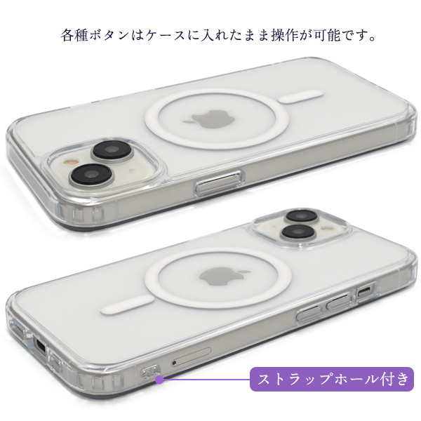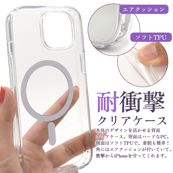 【スマホケース】iPhone 15用 MagSafe対応 耐衝撃クリアケース